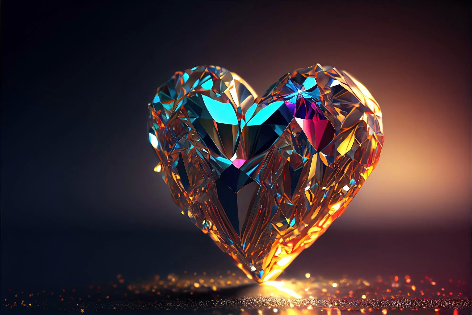 یک قلب دکوری ساخته شده از الماس بسیار درخشنده با پس زمینه نورانی