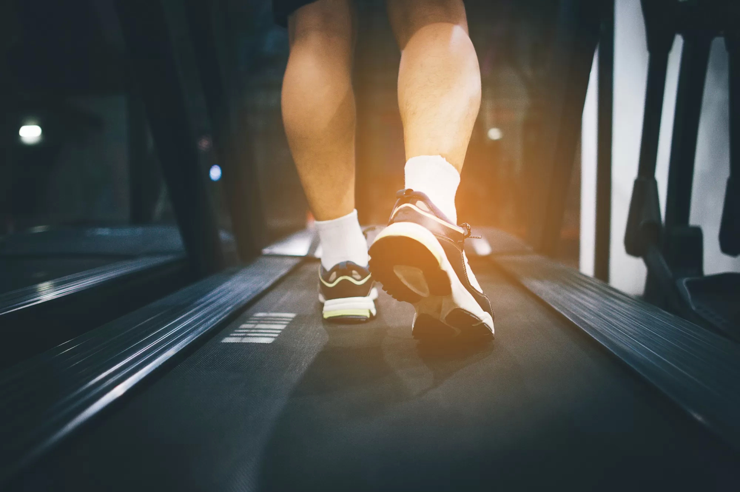 تصویر یک مرد در حال راه رفتن روی تردمیل